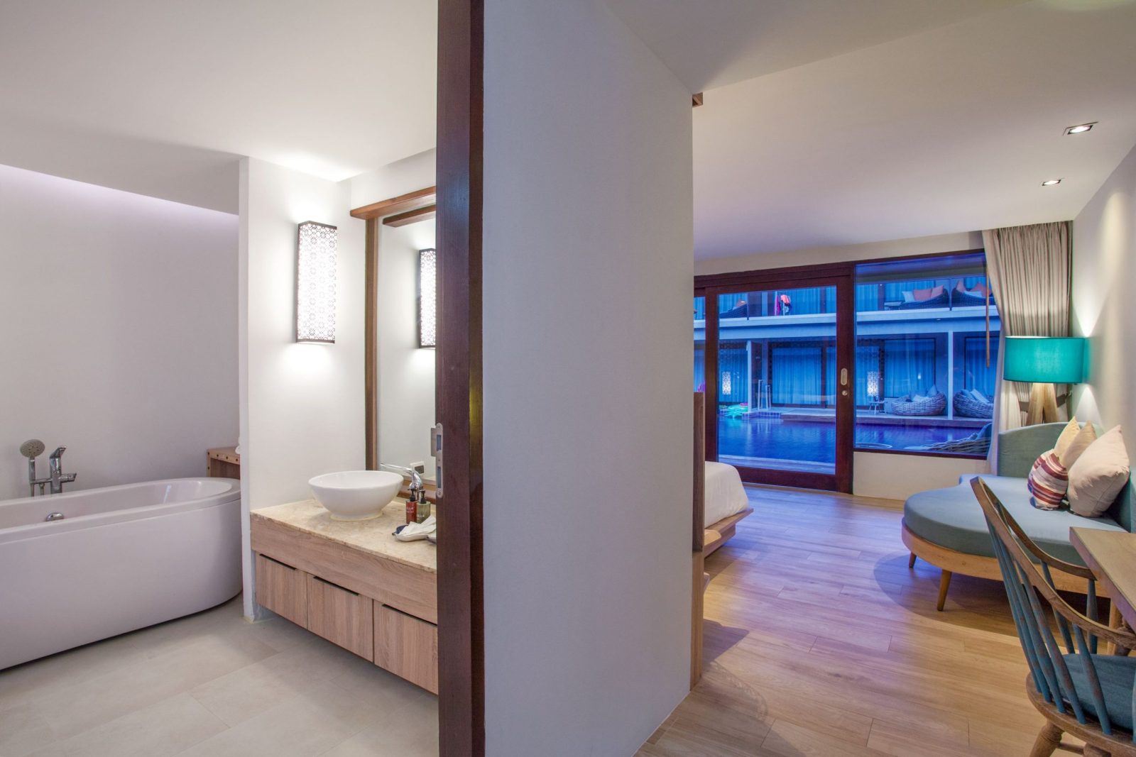 The Villa Suite room size is 59 square meters with high privacy. Set amidst a beautiful tropical landscape. near the pool and the beach Separate living area A luxurious retreat with ample space for an unforgettable experience