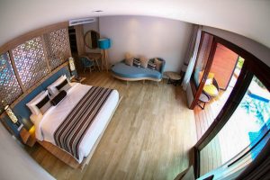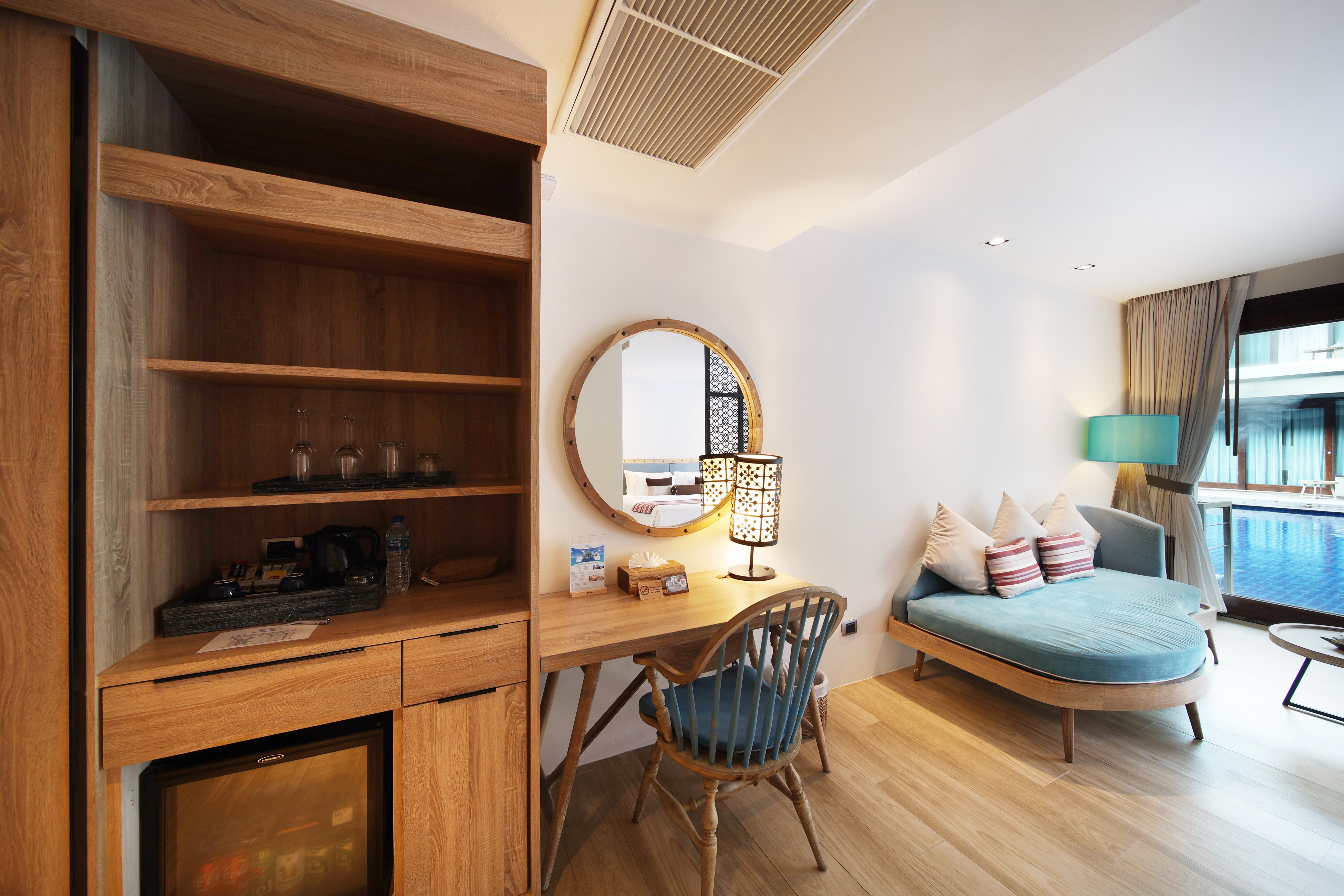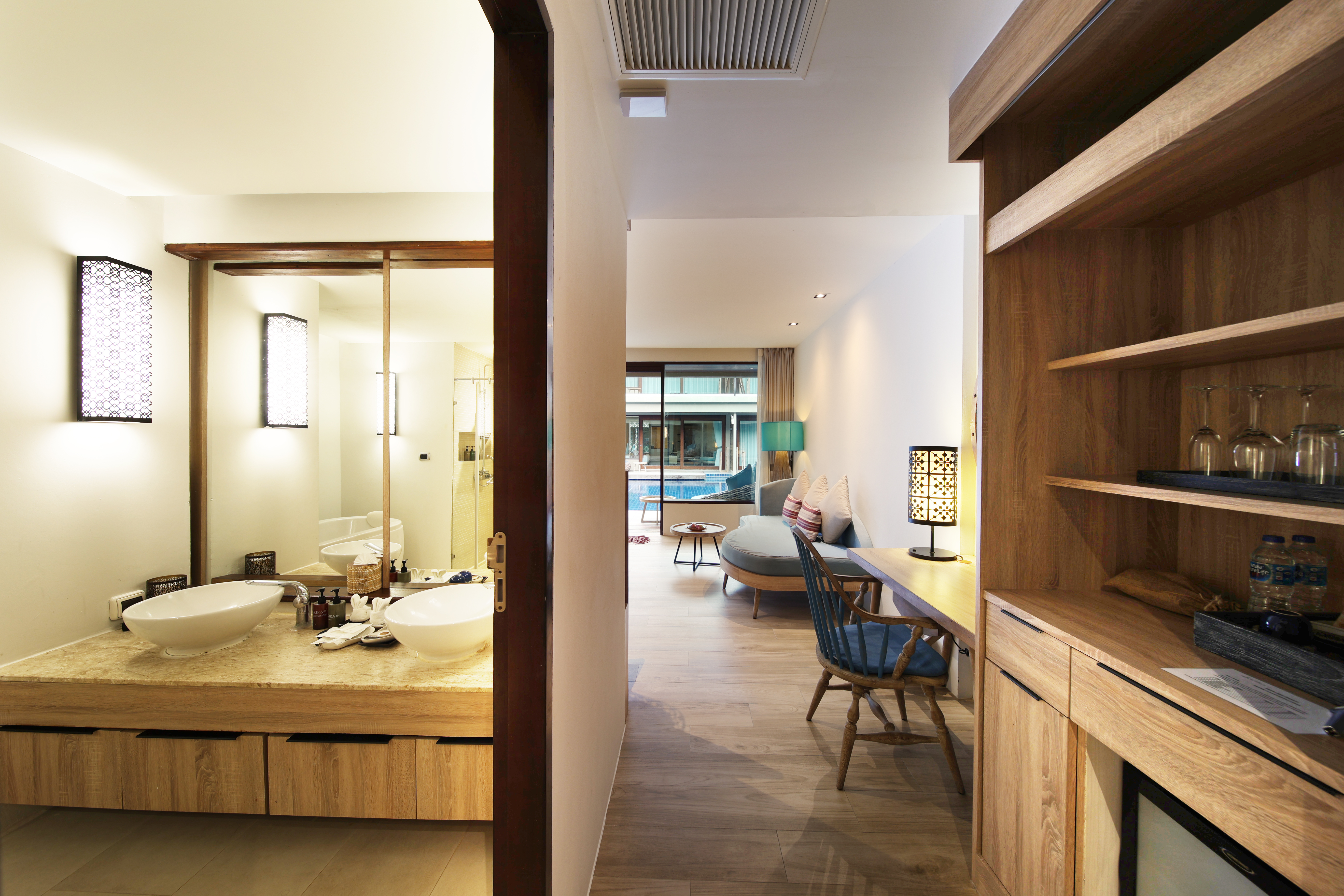 The Deluxe Pool Access rooms are 52 square meters in size and offer not only a comfortable king-size bed or two single beds but also a large bathroom with a bathtub and shower. but also have a private balcony with direct access to the swimming pool.