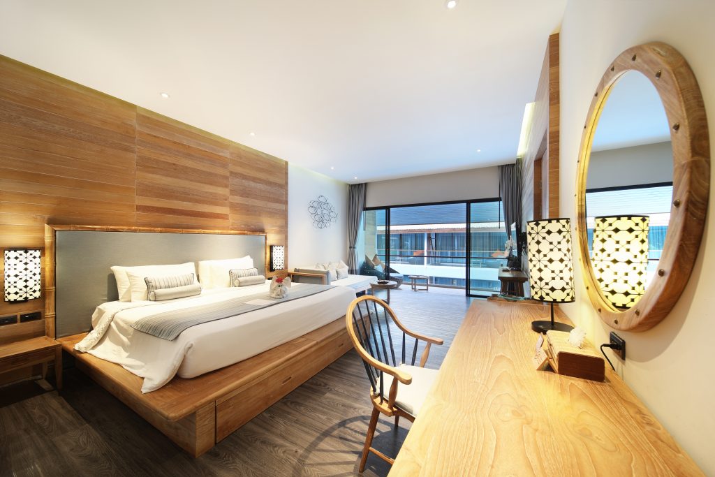 Superior Pool View 房面积为44平方米,位于大楼顶层,可通过推拉玻璃门俯瞰泳池,或出门可观赏酒店泳池, 从房间的私人阳台 配备一张特大号床或两张单人床和许多室内设施。